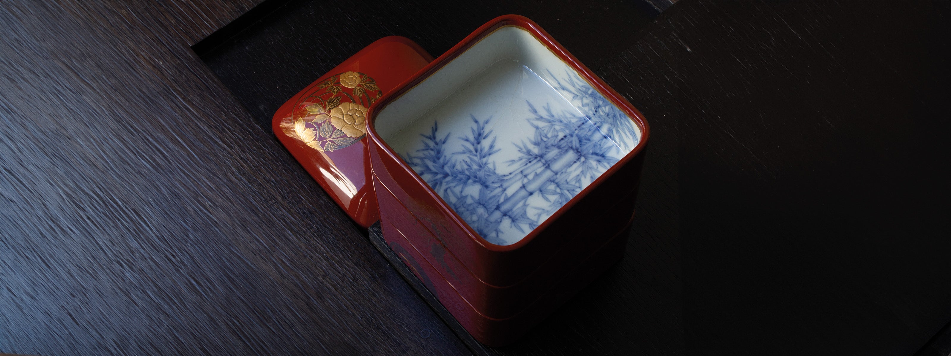 Boîte à étages (Jubako) contemporaine en laque urushi de Jōbōji