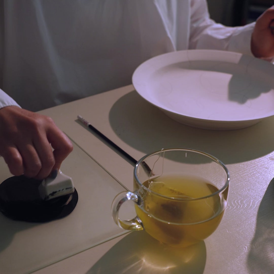 A bowl of immaculate white porcelain on which delicate peonies are hand-drawn and painted with gold threads. This unique piece is the work of Park Sun-young, an artist based in Icheon, south of Seoul, an historical Korean ceramics location. Aa a potter, she once placed a peony on a piece and since then these flowers have become her life. She works in the Korean tradition of white and blue porcelain, creating contrasts of immense poetry.