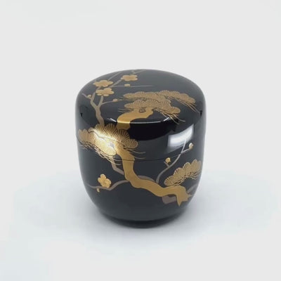 Natsume (boîte à thé) laque et or, motif matsu (pin) et ume (fleurs de prunier) de Naohiko Kurayama